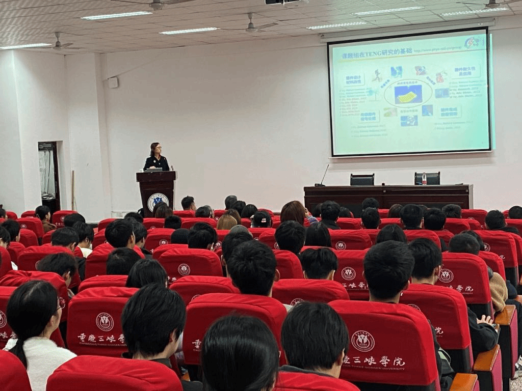 接着,胡教授围绕提升TENG输出能量问题;接触分离式TENG提升电荷密度的方法,滑移式TENG提升平均输出功率的方法;摩擦纳米发电机及自驱动传感器等方面深入浅出地讲解,并对课题组近年开展的工作进程进行介绍。