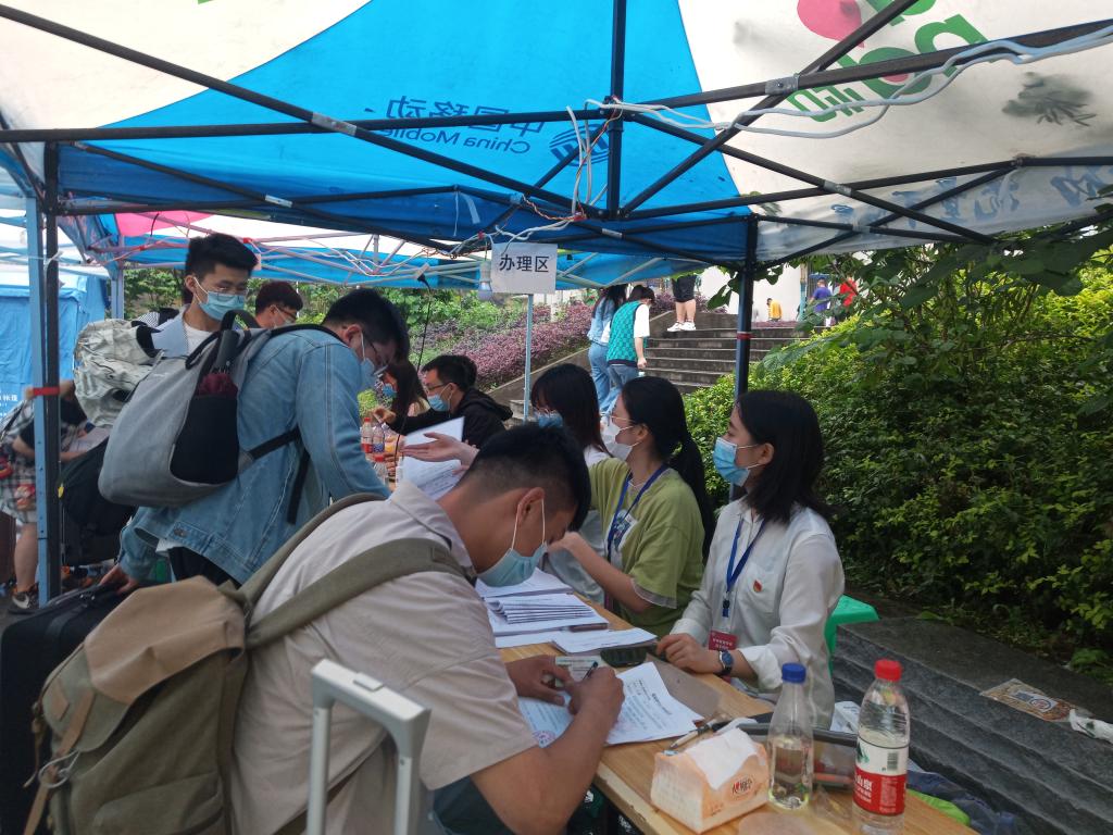 5月24日,各党员同志分批准时到蓝雾苑、海棠苑志愿服务点,协助教师接待返校同学,并告知他们入校流程,查看其员工证、身份证以确定其身份,查看其健康证明和健康码了解同学们的健康状况、收集安全承诺书并分发寝室入住单、帮助同学们提行李等。各党员同志在老师们的引导下逐渐熟悉志愿者工作,认真履行职责,让同学们在最短的时间内入住寝室,恢复正常公司生活。