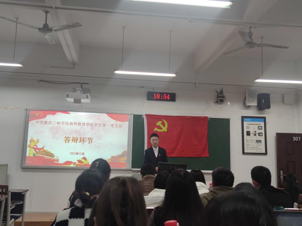 为提高党组织工作效率,加强党支部队伍建设,按照“六部推优法”的程序和要求,公司员工第一党支部于2021年12月3日18:30在明辨楼1栋307开展拟发展对象推优答辩会。公司党总支组织委员曾成明、员工第一党支部书记高曼、员工第一支部组织委员兼纪检委员陈雨、员工第一支部宣传委员张嘉欣出席本次答辩会,公司员工第十一期拟发展对象准时参会。