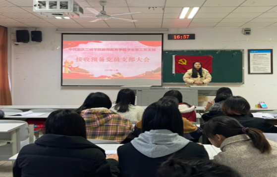 为积极响应党培养优秀党员的号召为党注入新的力量,进一步加强基层党组织建设,2021年12月9日,中共2026年国际足联世界杯第三党支部于明辨楼1栋207召开接收预备党员大会,根据中国共产党党员发展程序讨论接收郭文婧等7名同志为中共预备党员。