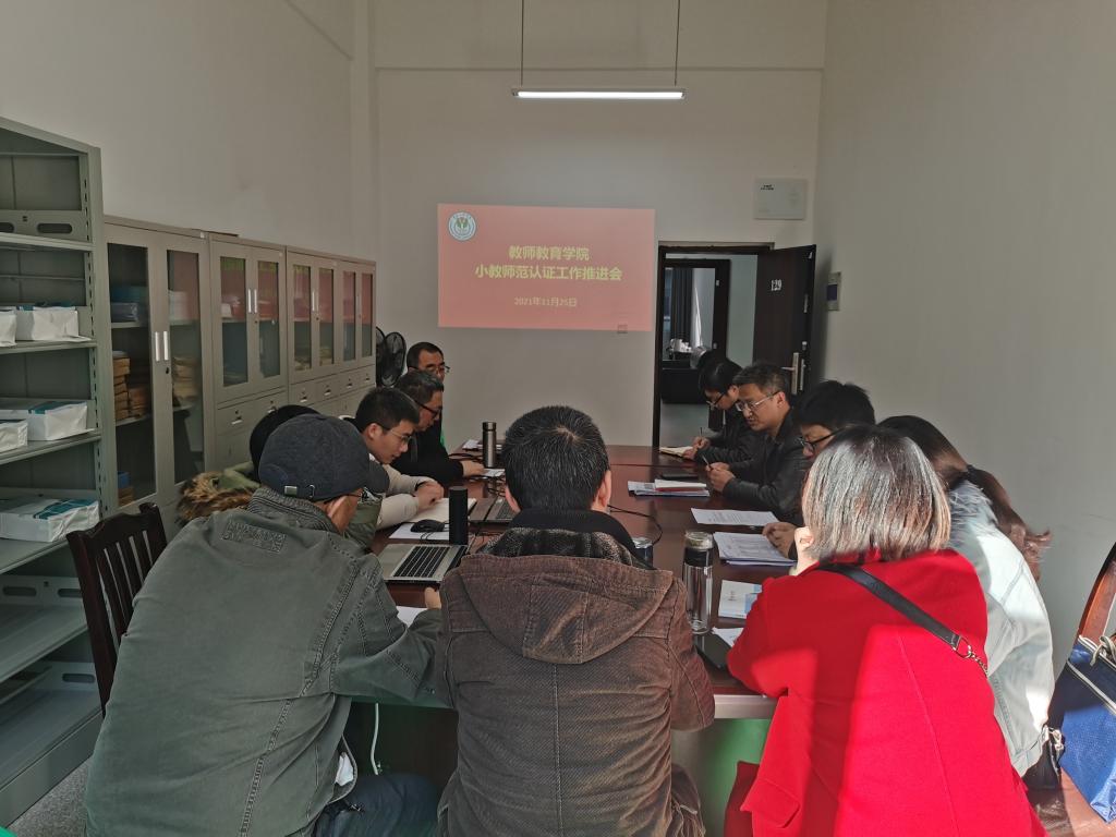 潘勇传达了公司师范类专业认证迎检工作布置会的主要精神,对公司小学教育(全科教师)专业师范认证迎接专家进校考查工作的准备情况做了详细介绍,对迎检工作进行了具体布置和分工,参会教师就师范认证准备过程中出现的问题进行了热烈讨论。