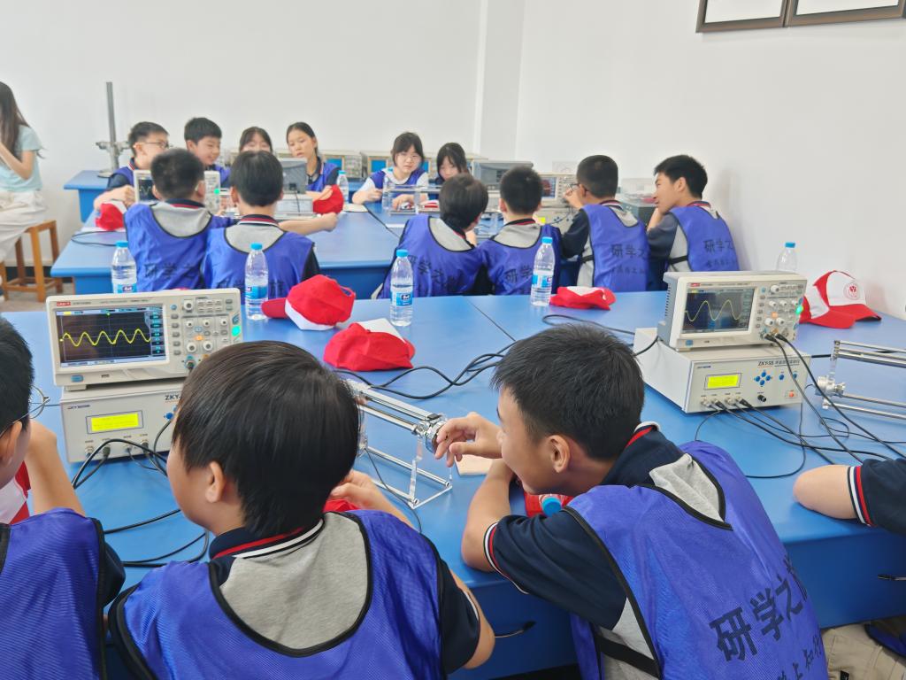 研学中,员工们学习和参与了声音的速度、光电效应、薄透镜的成像规律物理实验。